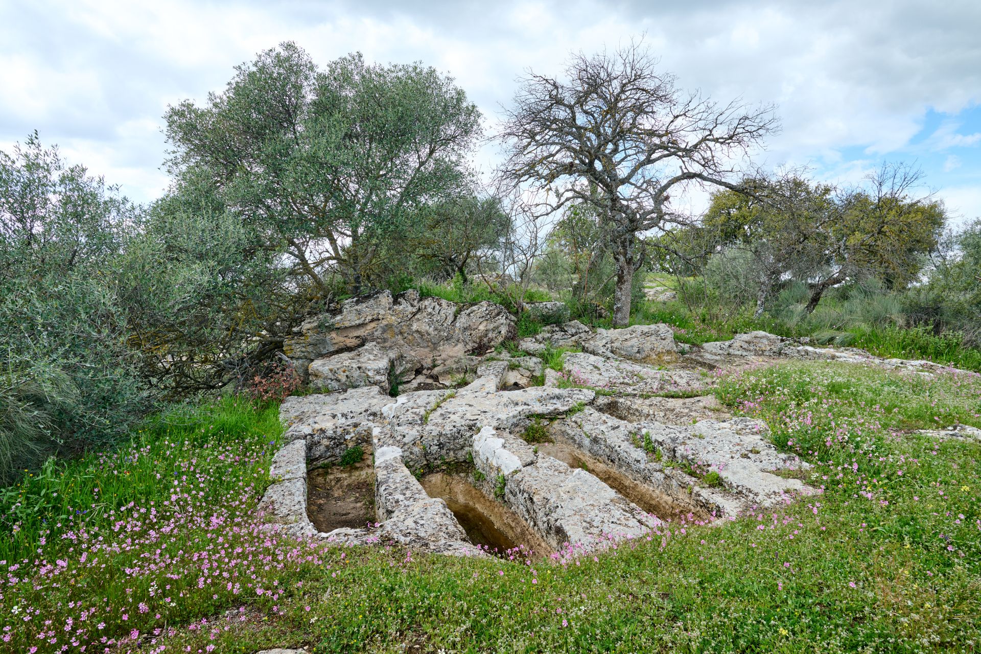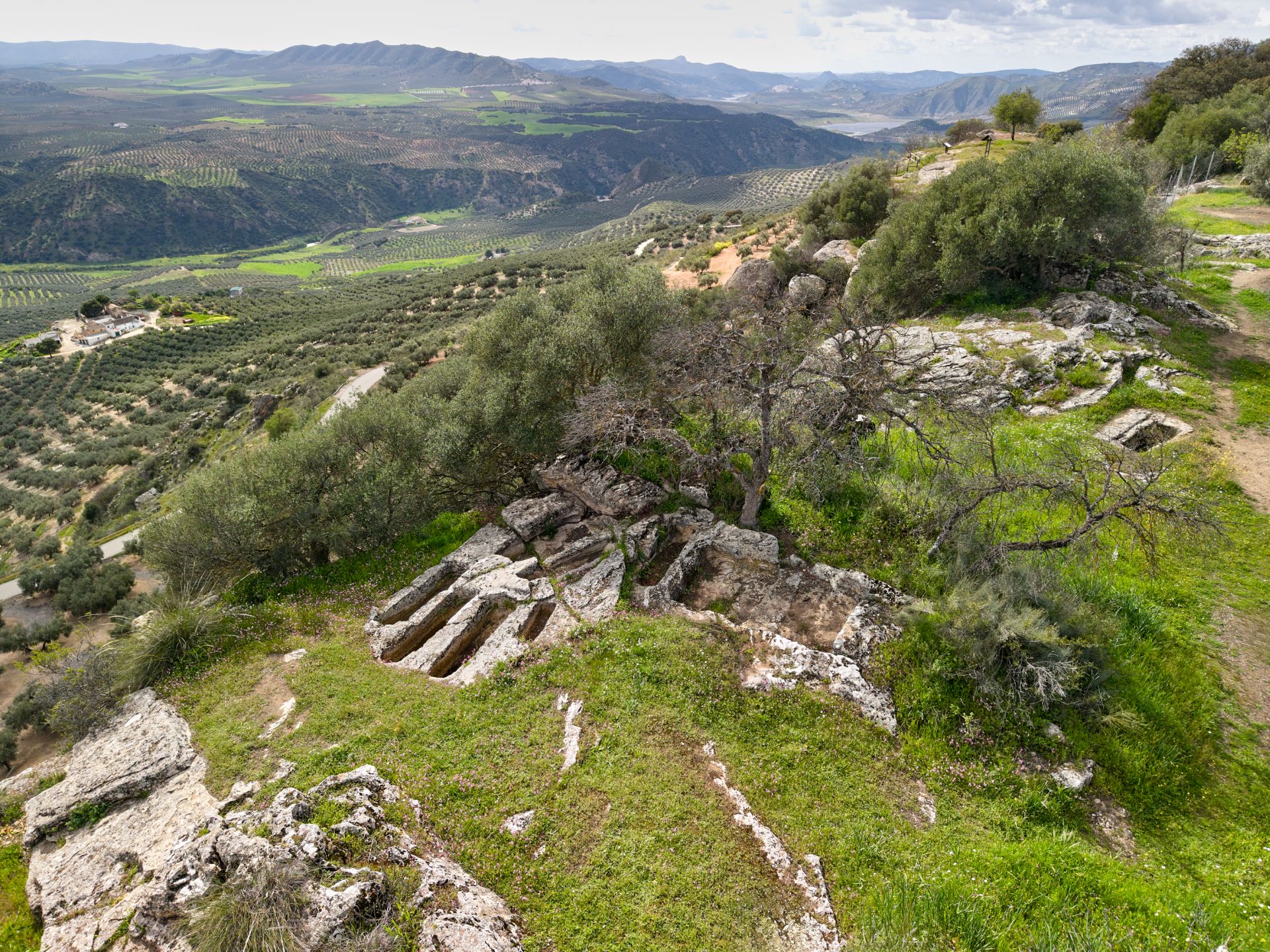 El Conjunto Arqueológico de Sierra Martilla se encuentra sobre una elevación de roca caliza en la Sierra Martilla, cerca de Ventorros de San José, en Loja. Este Bien de Interés Cultural documenta casi cinco mil años de historia continua, desde el Neolítico hasta la Edad Media, convirtiéndolo en un auténtico ‘libro de piedra’ que cuenta la evolución del territorio. Su elemento más importante es una Necrópolis Megalítica del IV milenio a.C., excepcional por su técnica de construcción única: en lugar de usar grandes piedras como los dólmenes tradicionales, varias cámaras funerarias fueron excavadas directamente en la roca caliza, una solución constructiva sin igual en Andalucía.