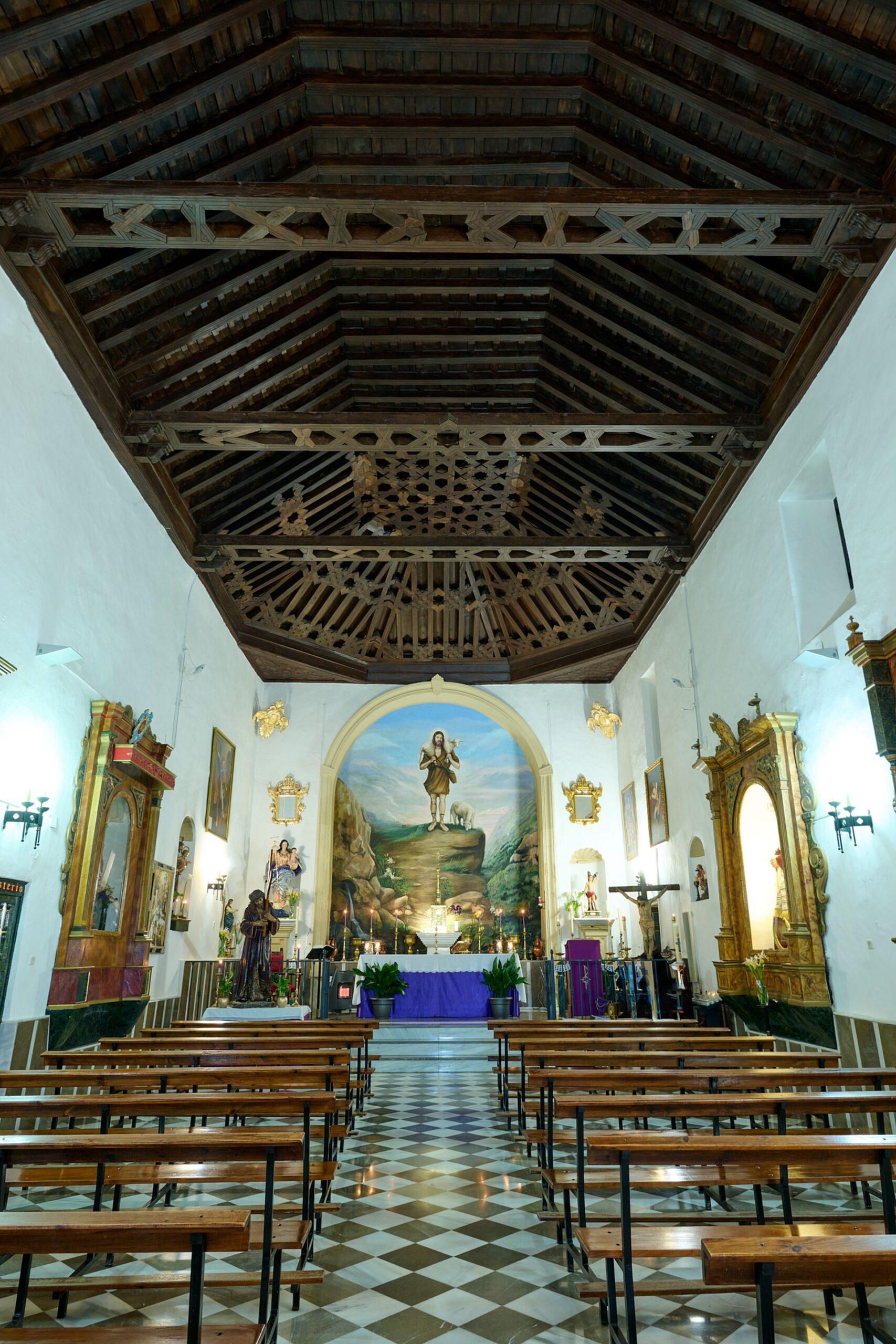 El templo responde a una tipología basilical de una sola nave sin capillas laterales, cubierta originalmente mediante un artesonado de madera sin apenas decoración, característico de la sobriedad mudéjar. La cabecera no presenta separación arquitectónica respecto al cuerpo de la nave, conformando un espacio unitario y recogido. Su exterior, de gran sencillez formal, concentra su interés en la estructura y las proporciones antes que en la ornamentación, rasgo distintivo de este estilo que supo fundir las herencias culturales de Al-Ándalus con la liturgia cristiana.