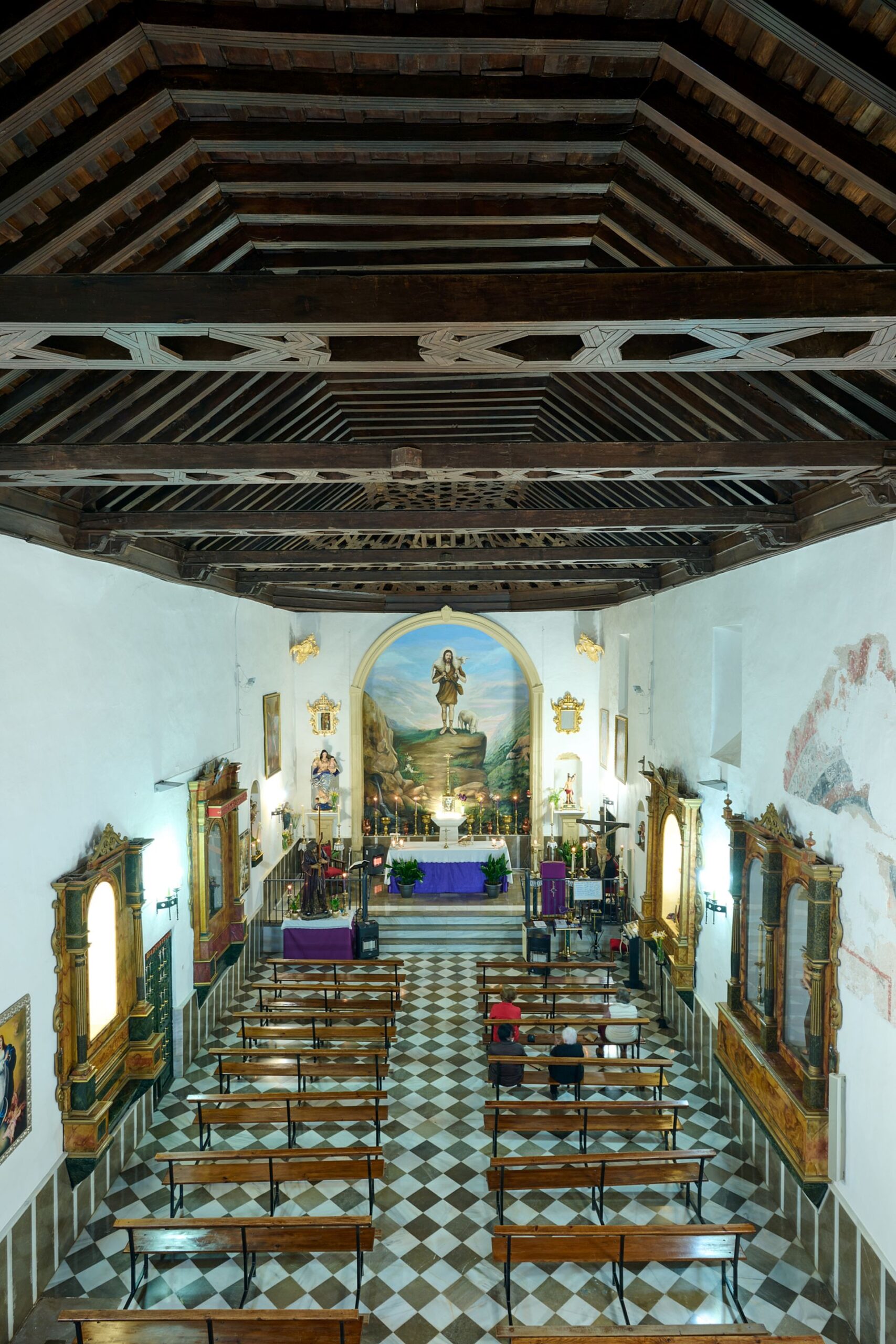 En su interior se conservan elementos de gran valor histórico-artístico, entre los que destaca el coro de madera original y el sepulcro de Doña María Silva de Cisneros, fechado en 1679, testimonio de la vinculación del templo con las familias señoriales que dominaron la villa tras la conquista.
