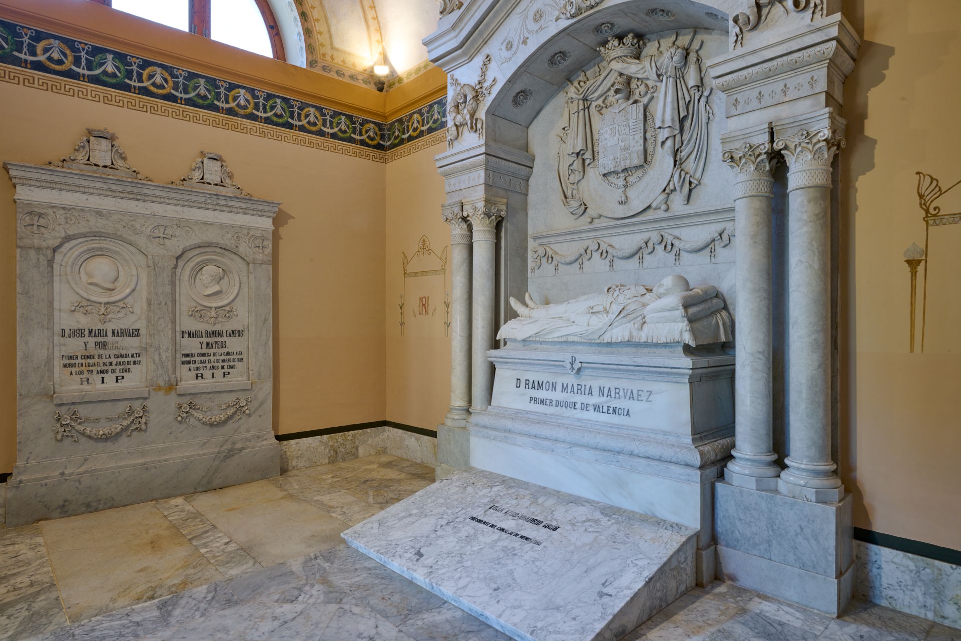 El Mausoleo del General Narváez alberga los restos mortales de Ramón María Narváez y Campos, primer Duque de Valencia (Loja, 1799 – Madrid, 1868), una de las figuras políticas más influyentes de la España del siglo XIX. Militar de valor legendario —apodado ‘El Espadón de Loja’— y presidente del Consejo de Ministros en varias ocasiones durante el reinado de Isabel II, Narváez lideró el Partido Moderado y gobernó con mano firme en momentos cruciales para el país.