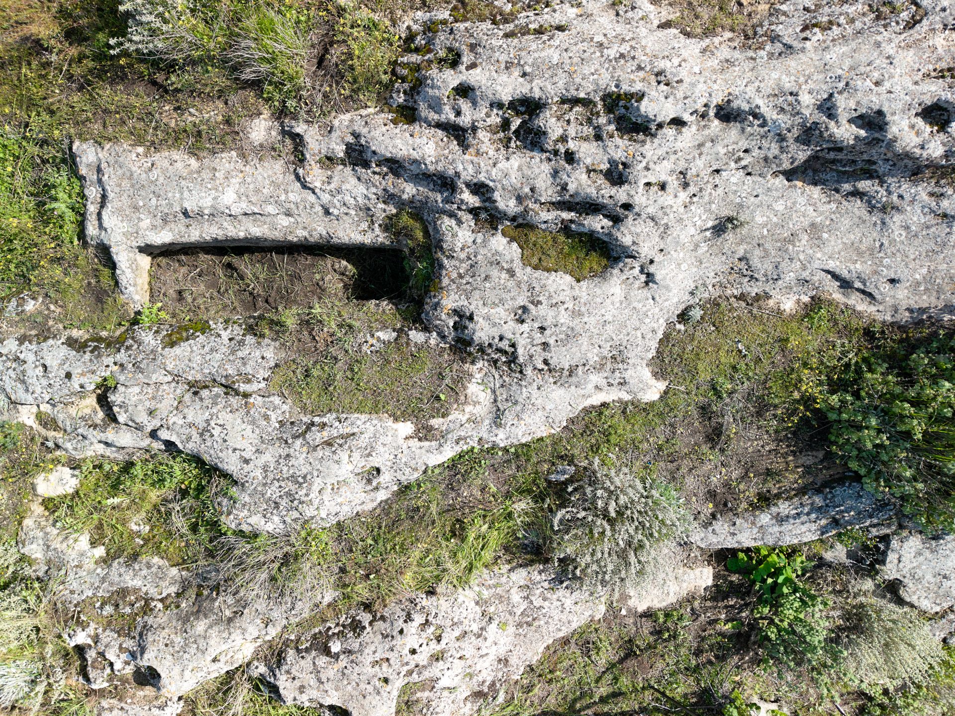 Este yacimiento se enmarca dentro de un espacio arqueológico más amplio que constituye un conjunto monástico rupestre (excavado en roca) con una iglesia rupestre (cueva natural adaptada como zona de culto), un baptisterio rupestre, una necrópolis principal con unas 60 tumbas excavadas en roca distribuidas en 5 grupos, celdas monásticas en cuevas y un ergástulo de carácter penitencial. Se trata de una asociación inédita de todos los elementos propios de una comunidad de monjes y eremitas (personas que vivían en retiro espiritual, aisladas del mundo) dedicados a la vida contemplativa.